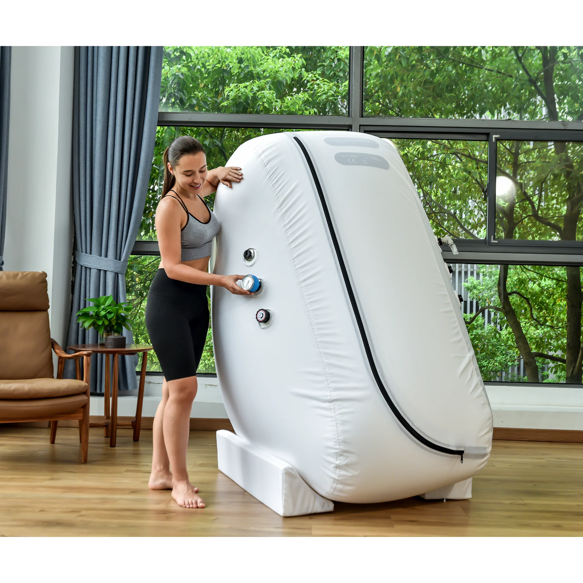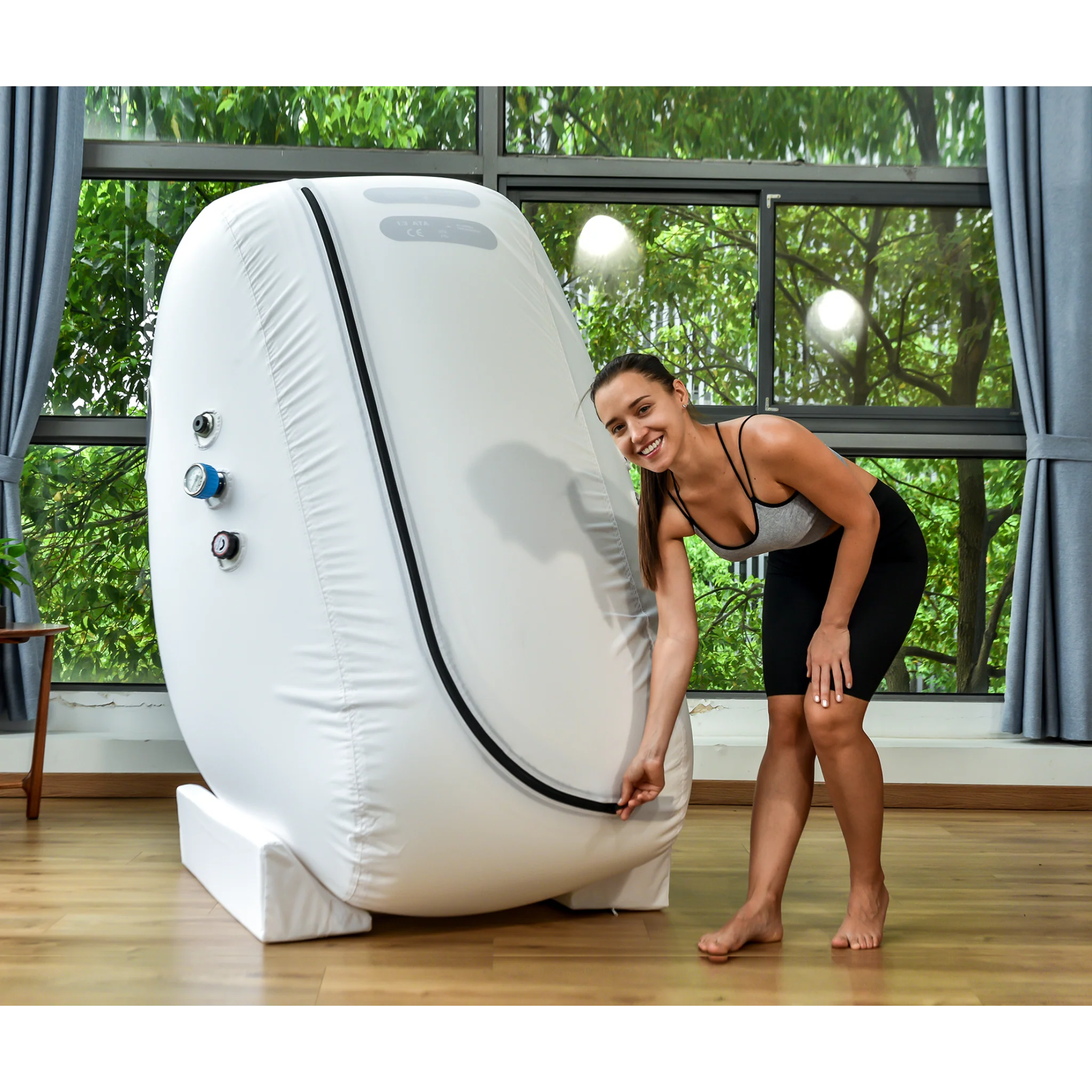 Built for safety and longevity, the chamber includes dual valves, backup pressure relief, and an emergency buzzer. Its triple-layer medical-grade TPU construction, steel frame, and heat-welded seams meet ISO and CE standards for durability and reliability. Custom branding is available at no extra cost for clinics and wellness centers.